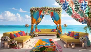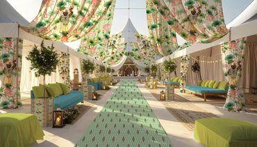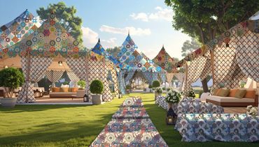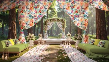 To make this storytelling even more immersive, we design themes and also print them on premium fabrics as required by our clients—allowing wedding planners, decorators, and event organizers to fabricate in their own unique style. Our themes can be customized in any size, shape, or format, ensuring they adapt beautifully across a wide range of décor elements. This flexibility gives a seamless look and feel throughout the event, unifying every detail into one memorable story.