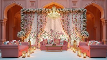 A romantic, elegant event theme with soft pink hues, delicate décor, and subtle accents. With flowing fabrics, floral arrangements, and curated details, it creates a dreamy, enchanting atmosphere, perfect for intimate celebrations filled with love, grace, and unforgettable moments.